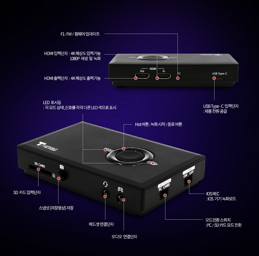 PC와의 연결 없이도 녹화가 가능하여 PC에 이상이 있거나 번거롭거나 PC가 없는 상황에서 사용하기에